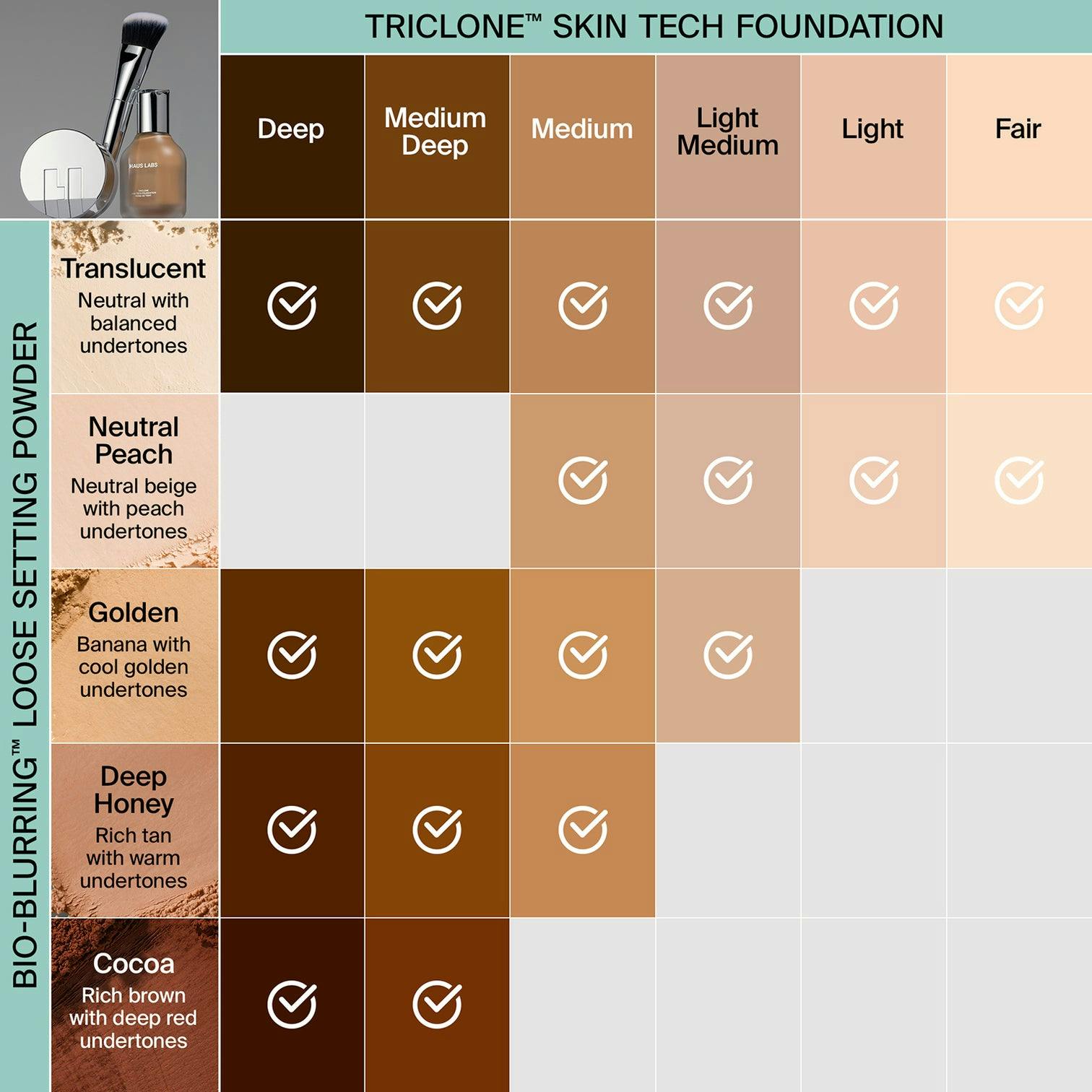 Un polvo suelto limpio, con ingredientes para el cuidado de la piel, que difumina las imperfecciones, suaviza la piel y optimiza el rendimiento del maquillaje en cinco tonos suaves y sin talco.
