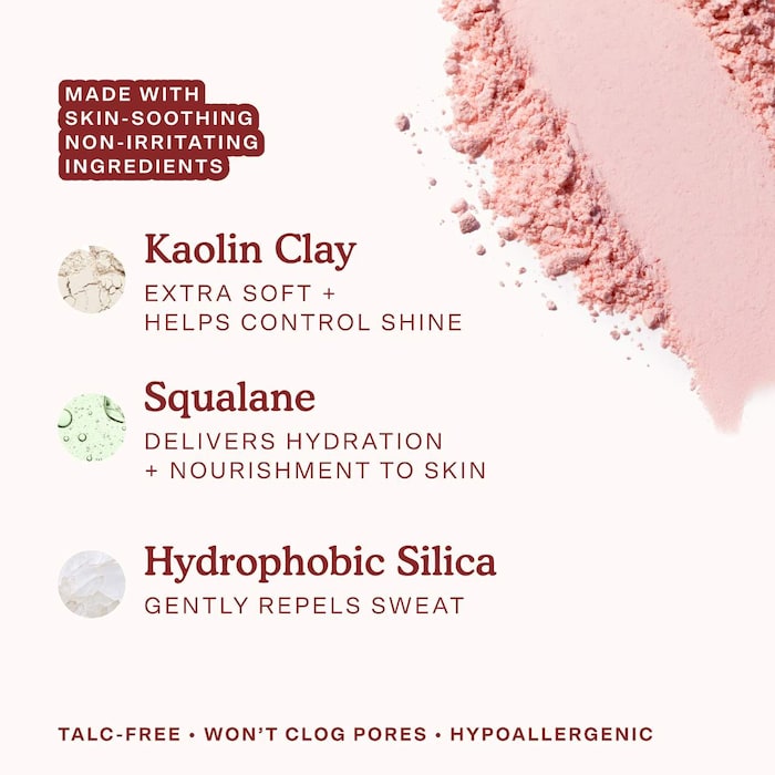 Un polvo fijador sin talco, seguro para pieles sensibles, que difumina y suaviza la piel y hace que cualquier base sea resistente a la transferencia y al sudor.