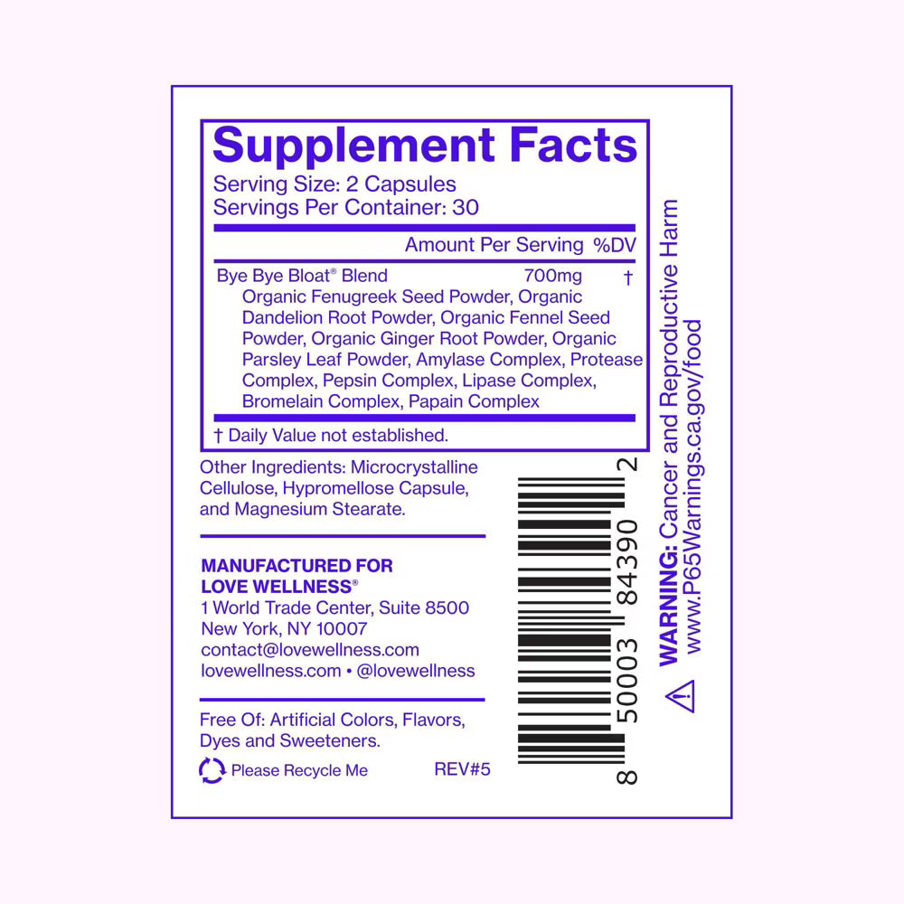🌿 Bye Bye Bloat – Love Wellness (60 cápsulas)