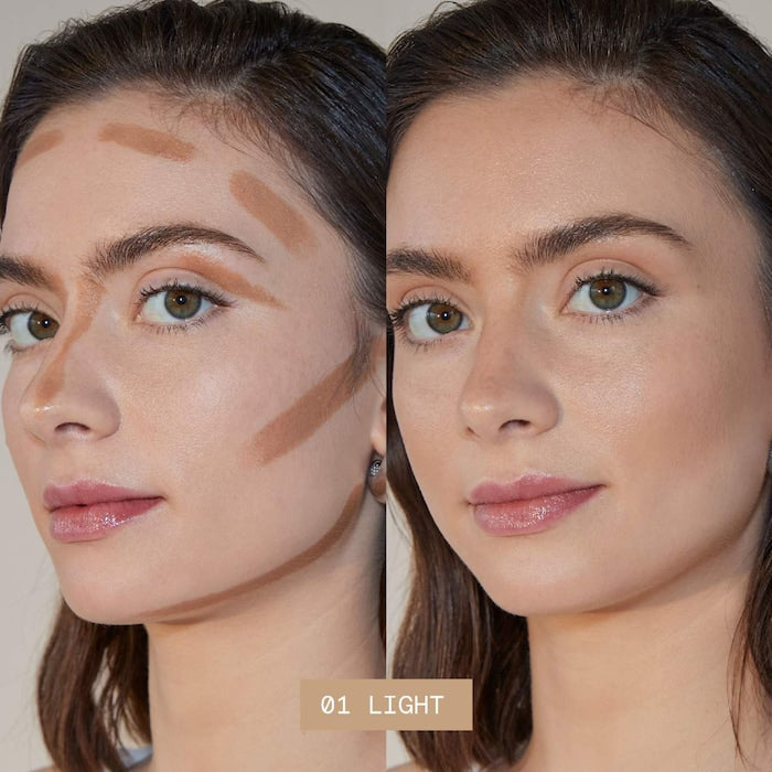 Esta barra de contorno multiusos, fácil de difuminar, ofrece una forma estrecha y única, diseñada para una aplicación precisa. Es segura para el acné y está elaborada sin obstruccionistas de poros. Aporta antioxidantes que reducen el riesgo de daño celular en la piel y protege contra los rayos UVA, UVB, luz azul y radiación infrarroja.